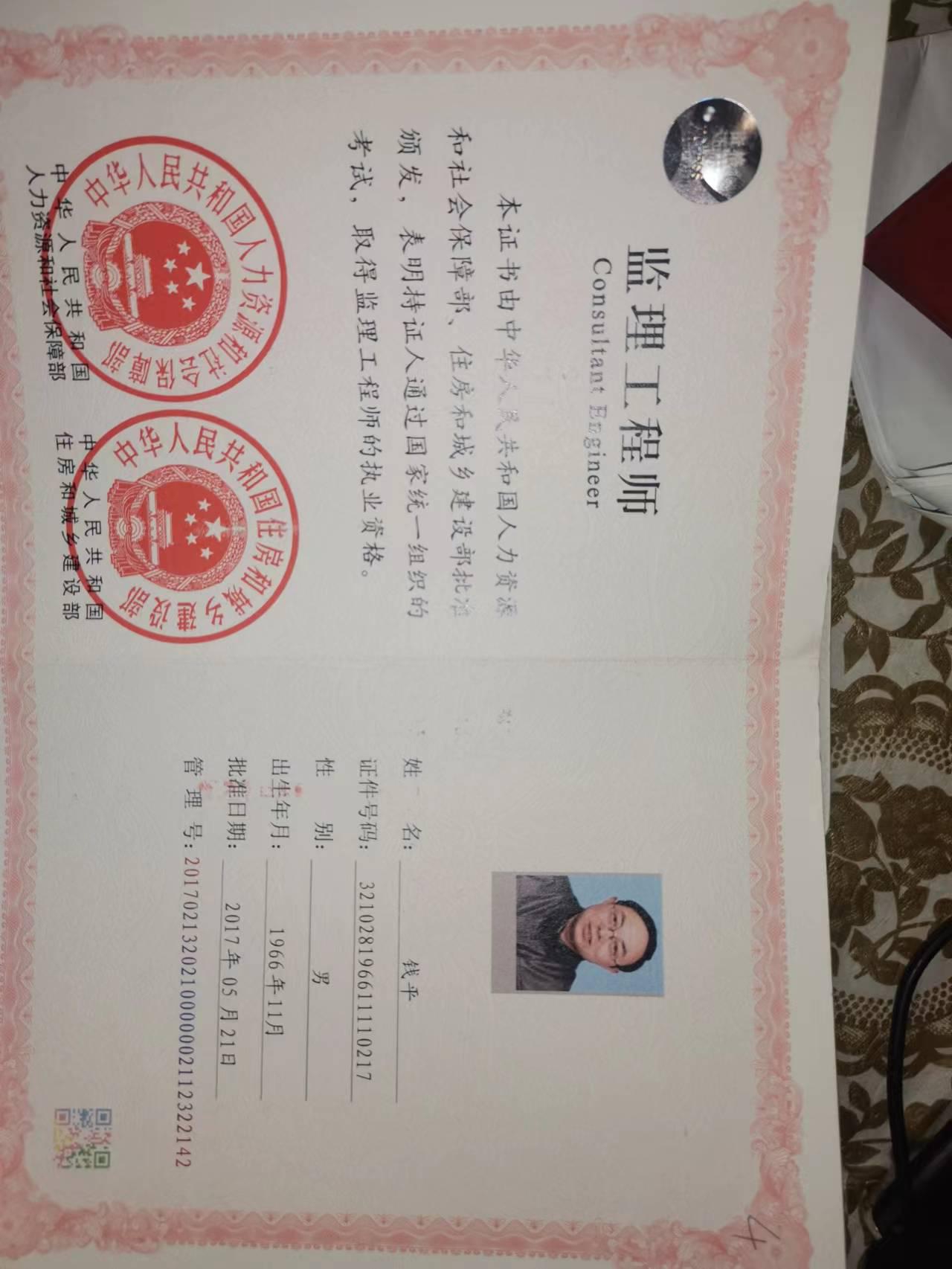 2017-5全國監(jiān)理工程師執(zhí)業(yè)資格證